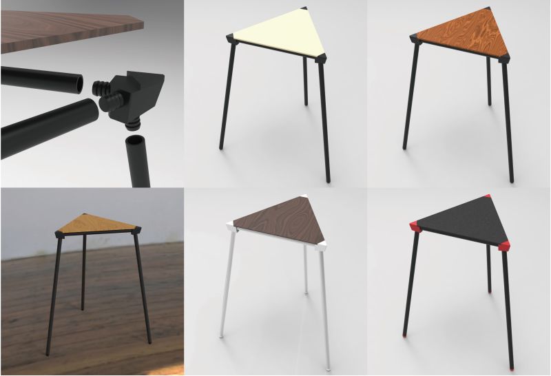 Design at the Core 未分類 2026.04.12 Here are some products developed by Studio8. This is the Tripod Table. Easy to assemble using 3D-printed joint parts and hollow PVC pipes. Details of 3D-printed joint parts.Created with Autodesk Fusion. 3D-printed tripod joint parts.